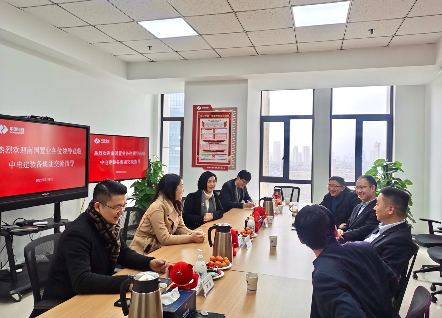 2月8日至9日,,,,,,,,英国365公司官网董事长武琳、党委书记吴慧芳、总司理胡泊一行,,,,,,,,新春拜会中国电建集团华中区域总部党工委书记、投资公司总司理蹇尚友和装备集团党委书记、董事长傅勇。。。。。。。。公司总司理助理、党委与行政办公室主任宋世伟,,,,,,,,董事会办公室主任吴磊等陪同。。。。。。。。