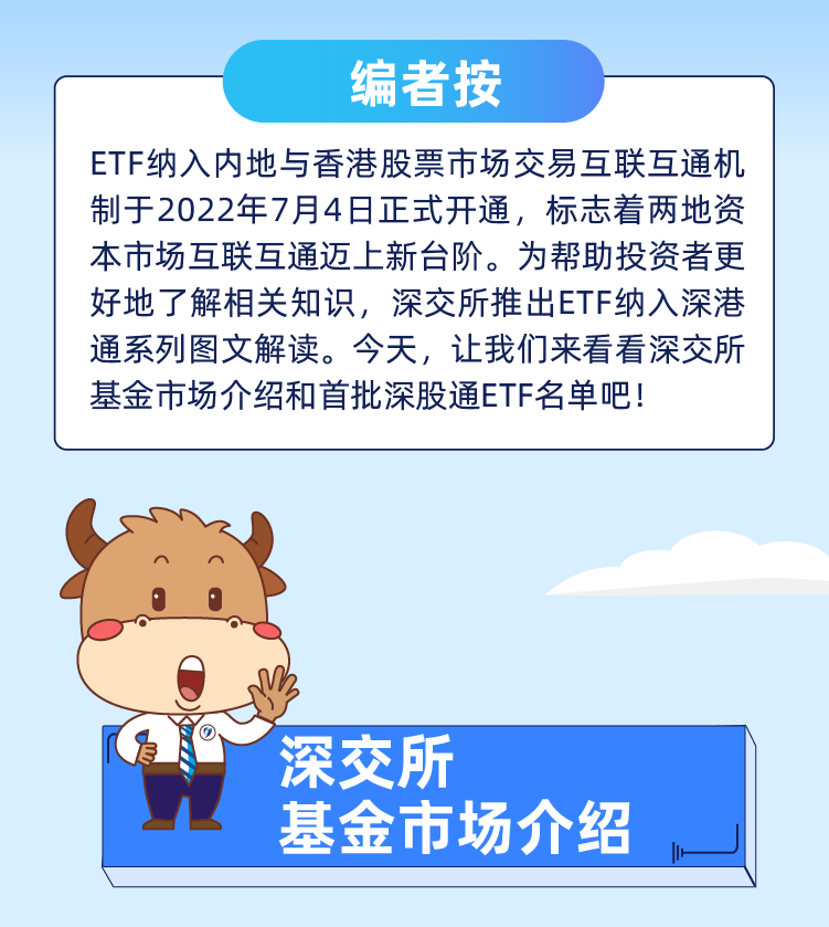 编者按:ETF纳入内地与香港股票市场生意互联互通机制于2022年7月4日正式开通,,, , ,,,,标记着两地资源市场互联互通迈上新台阶。。。。。。为资助投资者更好地相知趣关知识,,, , ,,,,深交所推出ETF纳入深港通系列图文解读。。。。。。今天,,, , ,,,,让我们来看看深交所基金市场先容和首批深股通ETF名单吧!